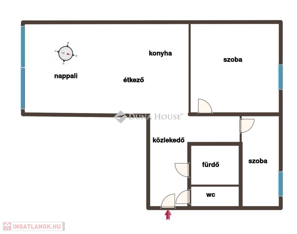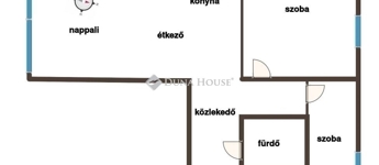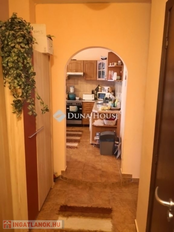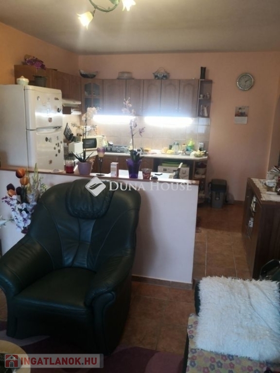 A szigetelt épületben lévő, amerikai konyha-nappali + két szobás, műanyag nyílászárós, klímával szerelt lakás. A nagyobbik 24 m2-es szoba lett átalakítva nappali + konyhává, az eredeti konyhából szoba lett.