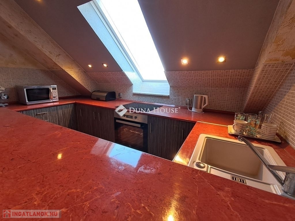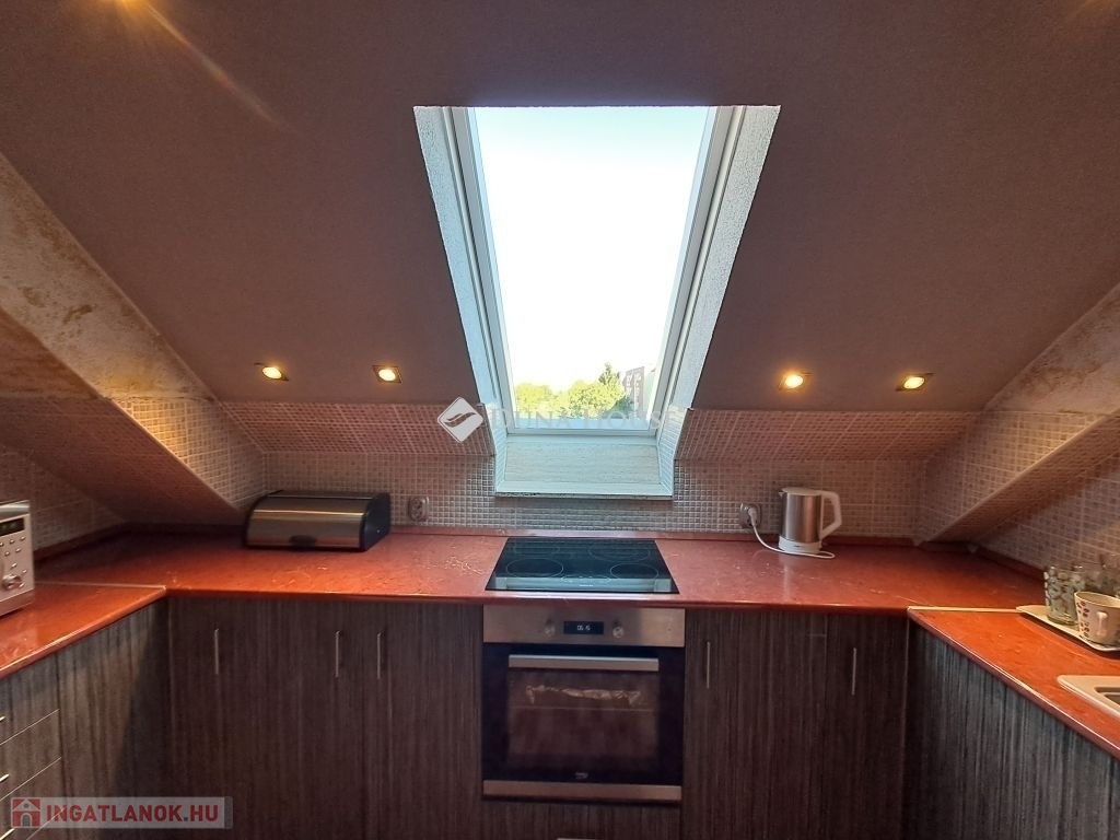 Eladó Pécs-Rózsadombon a Fáy András utcában 3 emeletes tégla építésű társasház legfelső szintjén egy átalakított, bruttó 70 m2-es (nettó 62 m2) erkélyes lakás, szigetelt épületben.Főbb jellemzők:-Kiválló állapotú műanyag nyílászárók-2+1 félszobás, nappali/amerikai konyhás, fürdő, wc elrendezés-Korszerű gázcirkó fűtésű, hűtő-fűtő klímával-Szúnyogháló/Redőnyökkel-Napellenző, áramkiállás az erkéllyen-Saját tároló-Gyönyörű Mecsekre néző panorámaAz ingatlan 1994-ben épült, karbantartott állapotú, a társasház rendezett, csendes lakóközösséggel rendelkezik, a parkolás az utcán díjmentesen megoldott. Az ingatlan infrastruktúrája kiváló: közelben található iskola, óvoda, üzletek, étterem, patika, buszmegálló, a belváros tömegközlekedéssel is gyorsan elérhető.Ideális választás fiatal pároknak, családoknak, vagy akár befektetésnek egyaránt.További információért, megtekintésért várom hívását!