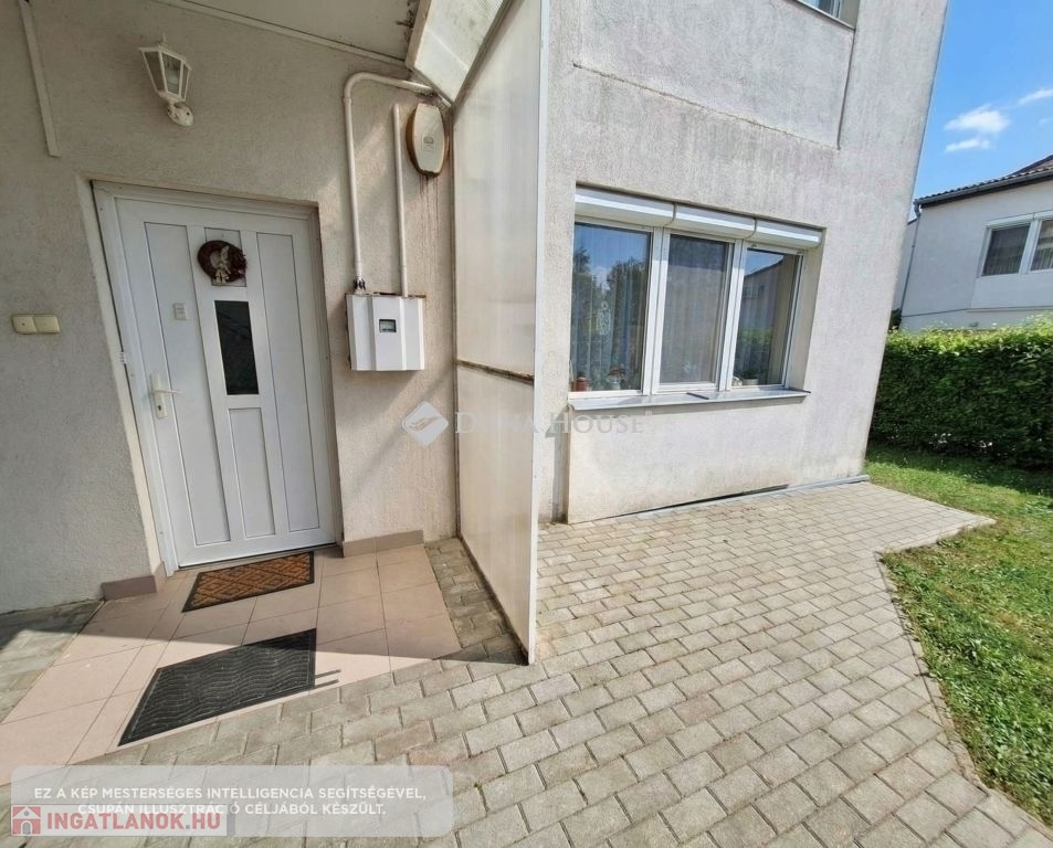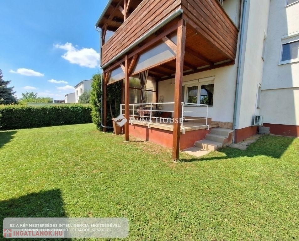 Az ingatlan műanyag nyílászárókkal, gáz-cirkó fűtéssel és riasztórendszerrel felszerelt. A nappaliból közvetlen kijárat nyílik a 12 m²-es fedett teraszra, ahonnan élvezhető a közös kert használata is.