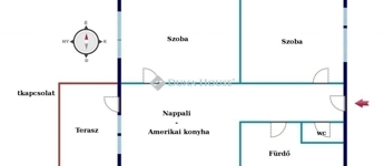 amerikai konyhás nappali, valamint két külön nyíló szoba biztosítja a kényelmes mindennapokat. A külön fürdőszoba és WC praktikus megoldást nyújt a család számára.