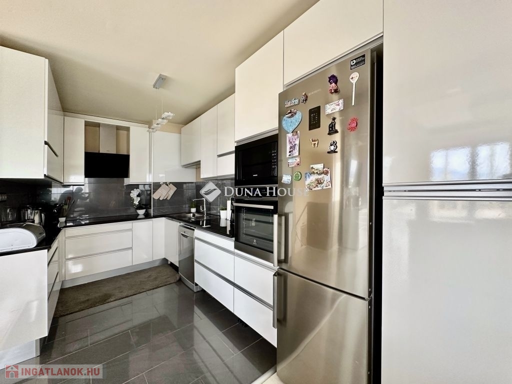 PécsExkluzív lehetőség a közkedvelt Fellbach lakóparkban: eladásra kínálunk egy kiváló elrendezésű, világos, modern kialakítású téglalakást, páratlan kilátással a Mecsekre. Az ingatlan egy lifttel ellátott társasház legfelső szintjén található, igényes, rendezett környezetben.Főbb jellemzők:Tágas amerikai konyhás nappaliNagyméretű tetőterasz elektromos árnyékolóvalKét külön nyíló hálószobaFürdőszoba + külön WCMinden helyiség klimatizáltSaját, zárható tárolóTávfűtés egyedi mérővelParkolás közvetlenül az épület előtt, mindkét irányból megközelíthetőenA lakás modern burkolatokkal, stílusos belsőépítészeti megoldásokkal, kiváló természetes fényviszonyokkal rendelkezik. Ideális választás azok számára, akik igényes, jól megközelíthető, nyugodt környezetben keresnek prémium ingatlant. További információért és megtekintésért keressen bizalommal!
