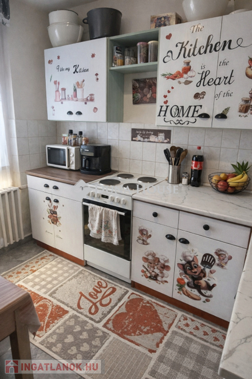 Pécsen, Árpádvárosban, a Csikor Kálmán utcában eladó egy 57 m²-es, 2,5 szobás lakás, egy négyemeletes társasház második emeletén.Az elosztása jól használható: a szobák külön nyílnak, így kényelmes saját otthonnak, de kiadásnál is praktikus megoldás. A helyiségek burkolata vegyes, a szobákban laminált padló, a többi helyiségben könnyen karbantartható felületek találhatók.A fürdőszoba korábban felújításra került, a nyílászárók nagy része már műanyag, redőnnyel és szúnyoghálóval felszerelt. A konyhában az eredeti ablak maradt.A lakás műszaki állapota rendezett, a fűtés távhővel megoldott, a nappaliban klíma segíti a komfortot.Közös tároló rendelkezésre áll, a parkolás a ház előtt díjmentes.Az ingatlan csendes, zöld környezetben található, Árpádváros nyugodtabb részén, így saját célra és befektetésre is jó alap lehet.