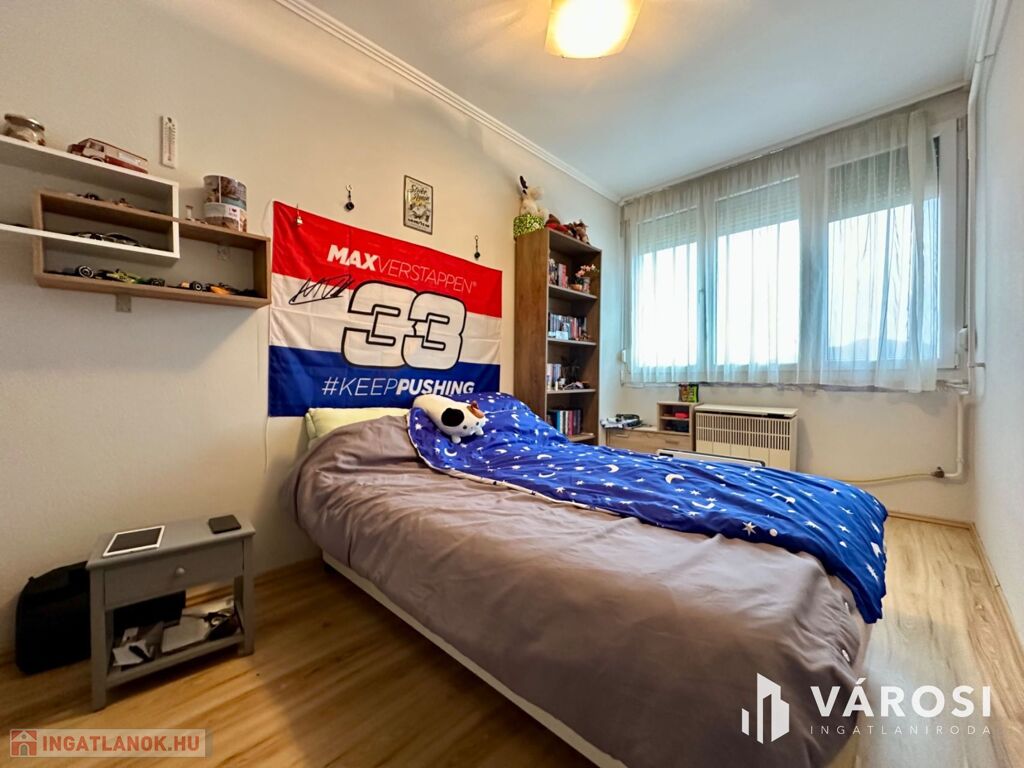 A külső nyílászárók műanyag tokprofillal szereltek, redőnyösek, az alsó burkolat a szobákban és az előszobában laminált parketta, az fürdőszobában járólap.