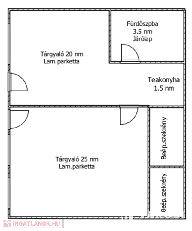 Helyiségei: 2 szoba, teakonyha, fürdőszoba.