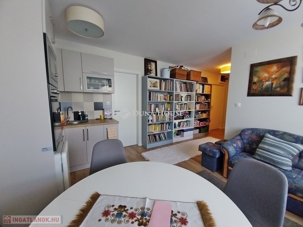 Udvari lakás (40,55 m² + 6,15 m² erkély): amerikai konyhás nappali, háló, fürdő, erkély