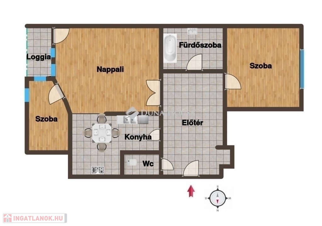 Az amerikai konyhás nappali + 2 külön nyíló szoba ideális kialakítást nyújt családoknak, pároknak, de akár befektetők számára is, akik hosszú távon értékálló ingatlant keresnek. A kelet-nyugati tájolás biztosítja, hogy a lakás minden napszakban természetes fényben ússzon.