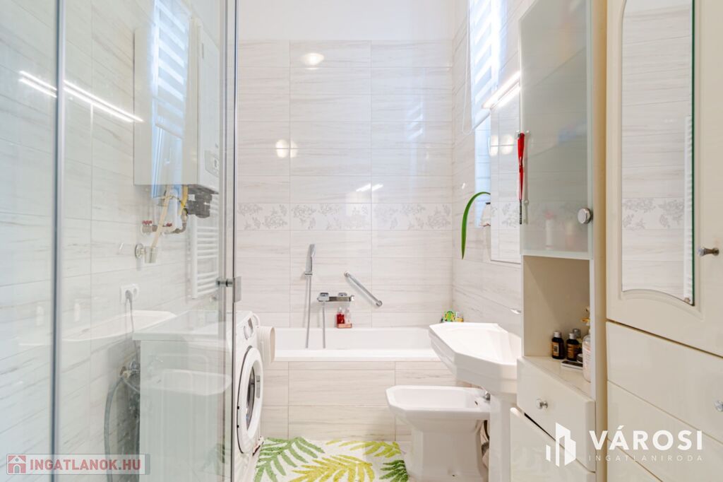 A lakás pár éve műszakilag teljes körűen megújult: új kondenzációs Baxi gázkazán és lapradiátorok gondoskodnak a hatékony fűtésről, háromrétegű műanyag hő- és hangszigetelt ablakok redőnnyel biztosítják a csendet és a nyugalmat, a teljes villamoshálózat új, a klíma pedig a nyári hőséget teszi könnyen elviselhetővé. A stílusos, teljesen felszerelt IKEA-konyha azonnal használatra kész, mellette egy praktikus kamra áll rendelkezésre. A konyhából még egy hangulatos belső zárt folyosóra léphetünk, amely kiváló helyszíne egy nyugodt reggeli kávénak vagy esti kikapcsolódásnak. A fürdőszoba tágas, benne külön kád és zuhanyzó kapott helyet, a WC külön helyiségben található. A felújítás során minden hidegburkolat és szaniter megújult, kizárólag minőségi, időtálló anyagok felhasználásával. A belső, zárt udvari parkoló pedig hatalmas kényelmet jelent a belváros közepén. A társasház tiszta, rendezett és kulturált, így a lakókörnyezet is méltó a lakás színvonalához.