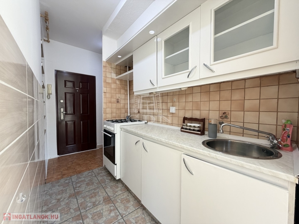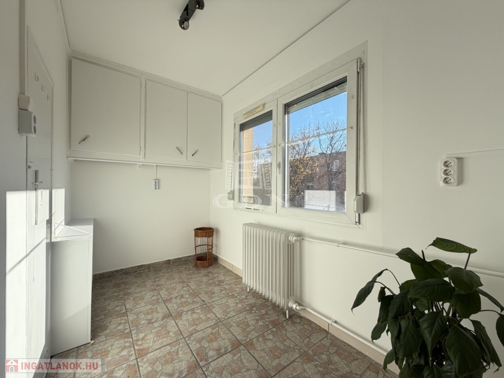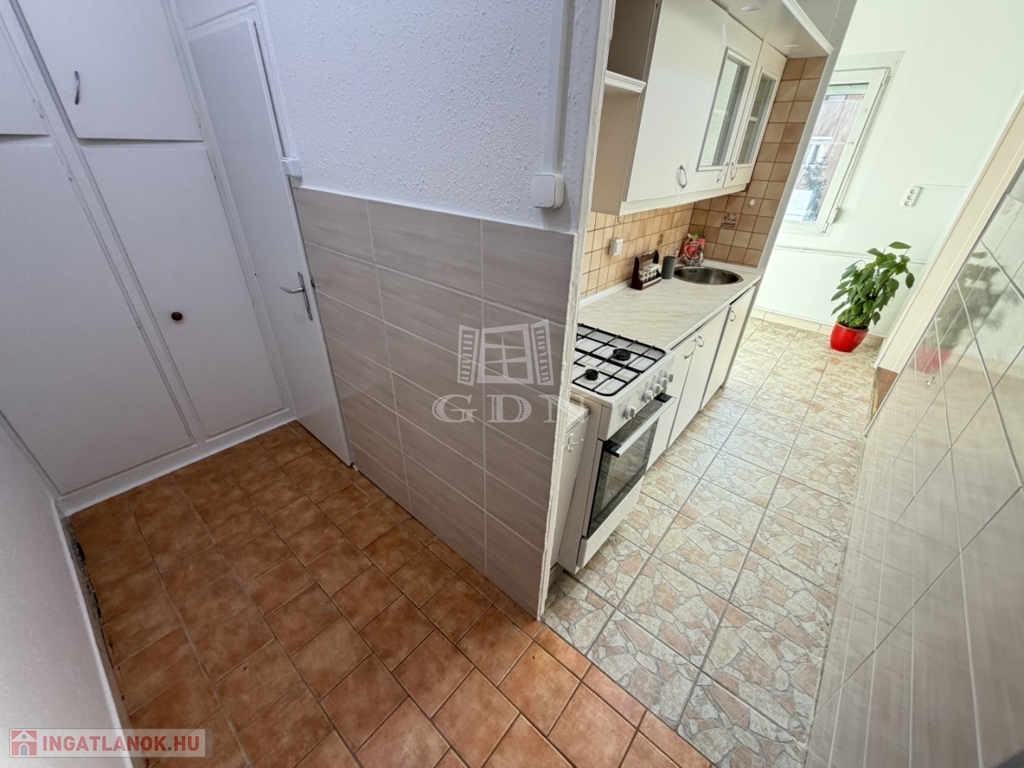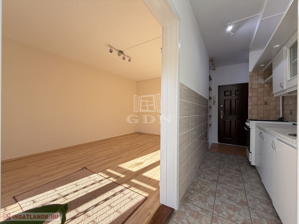 A 35nm-es lakás jó állapotú, új a villanyvezeték, 1 * 32A bővítés megtörtént, A műanyag nyílászárókon redőny, szúnyogháló található. Minden helyiségben a falak frissen festettek, járólap van a közlekedőben és vizes helyiségekben és az étkezőben, laminált padló a szobában.
