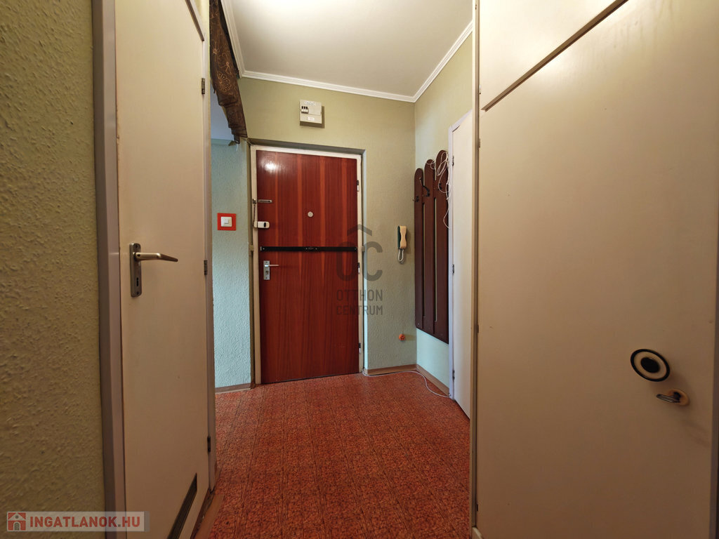 A lakás tágas előszobája-közlekedője mellett egy konyha-étkező, fürdőszoba, külön WC és két világos szoba található.