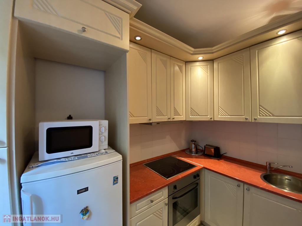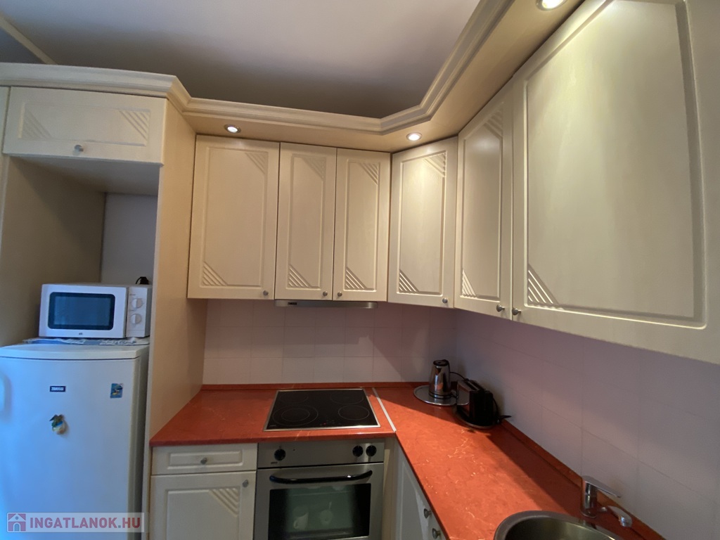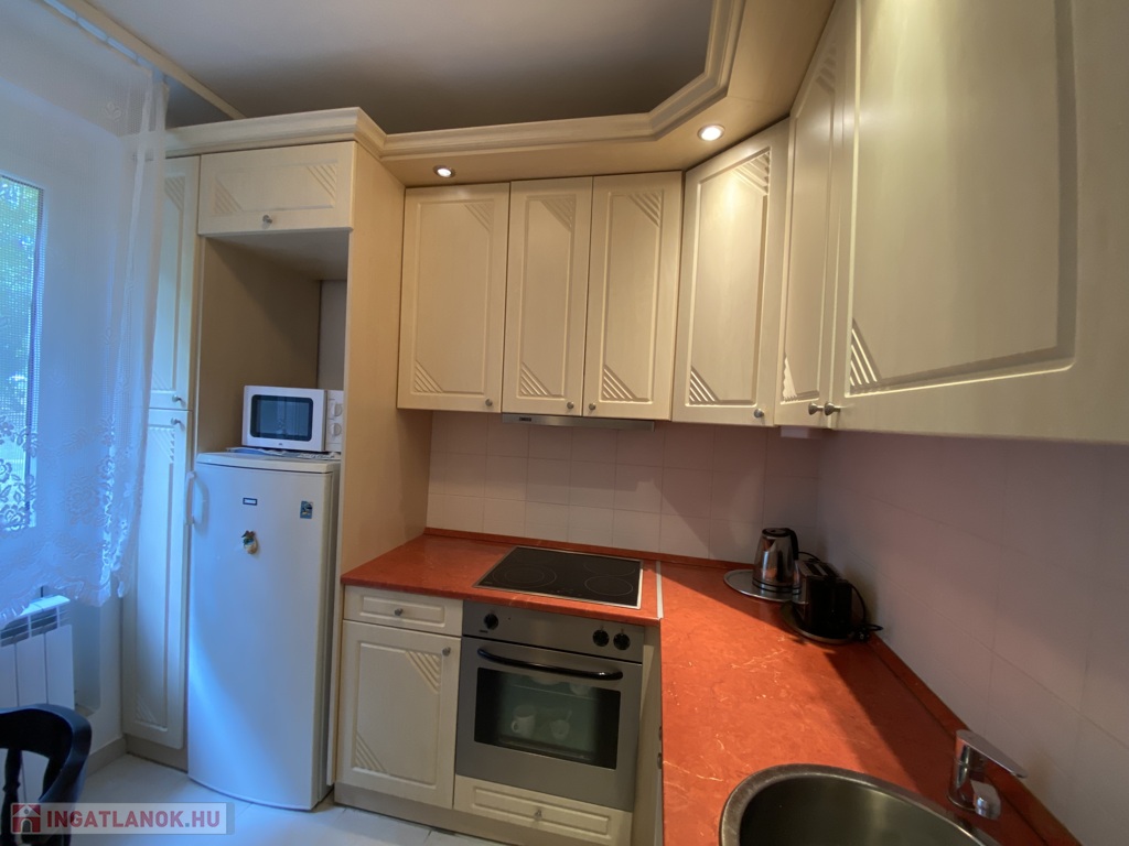 Az ár tartalmazza a beépített konyhát (hűtő, főzőlap, sütő, páraelszívó) és az előszobai beépített szekrényt is – így azonnal költözhető!