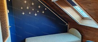 • -  a tetőtérben három szoba, kádas fürdőszoba WC-vel került kialakításra,
