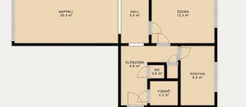 Az ingatlan elrendezése jól átgondolt: tágas nappali, külön nyíló hálószoba, külön konyha, fürdőszoba, WC és előszoba alkotják.