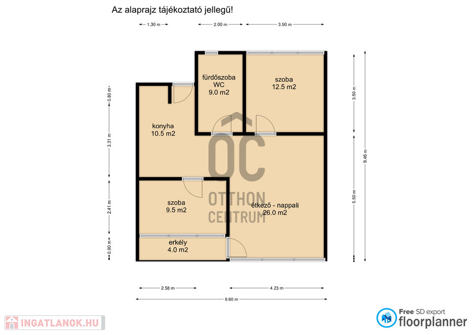 A 26 m2-es nappali, a konyha 2 hálószoba és a fürdőszoba azonnal az Ön otthona lehet.