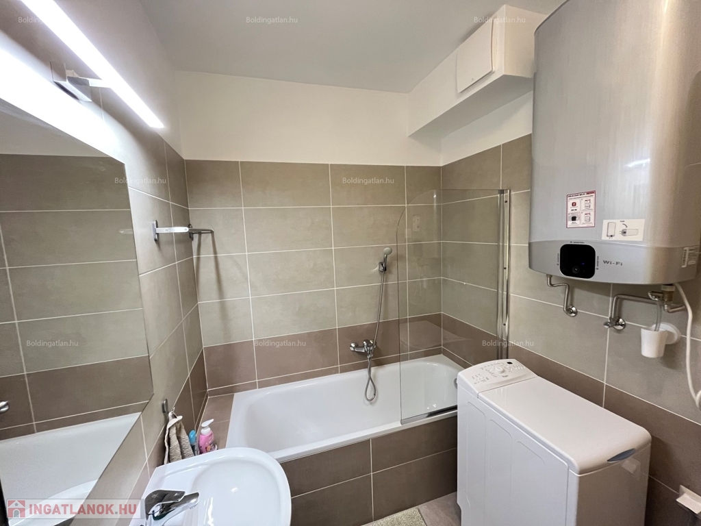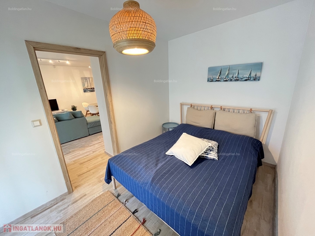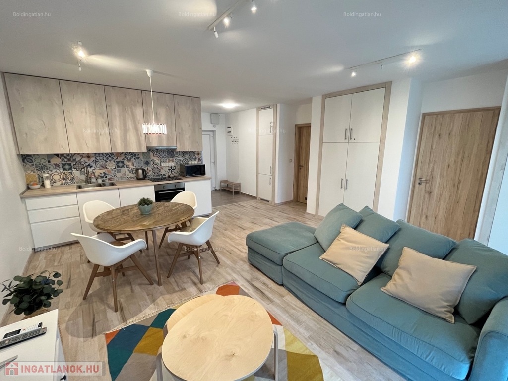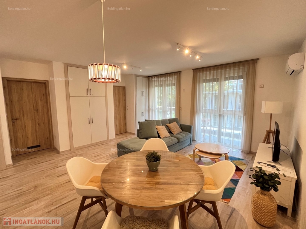 2026.05.31-IG!!! Balatonlellén a központ közelében, - a parttól nem messze - rendezett társasház 1. emeletén található, 48 m2-es - igényesen kialakított és berendezett - modern lakás kiadó. A lakásban előszoba-étkező-nappali, 1 szoba, fürdőszoba-wc helyiségek találhatóak, illetve a nappaliból kilépve nagy terasz is van. A fűtése légkondicionálokkal megoldott, továbbá riasztó is van felszerelve - a lakáshoz tartozik 1 db személyautó részére beállóhely is. A tulajdonos a lakást legfeljebb 2 felnőtt személy részére kívánja bérbe adni, a dohányzás és a kisállat tartása nem engedélyezett. Bérleti díj: 150.000.- Ft/hó + rezsi + 2 havi kaució