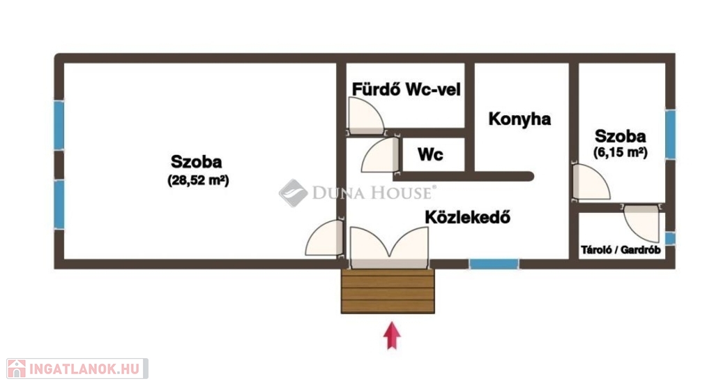 Az Irányi utcában található lakás karbantartott állapotú, 57 négyzetméteres, 1 egész (28,52 m²) és 1 félszobás (6,15 m²), új konyhával és praktikus tárolóhelyiséggel rendelkezik.