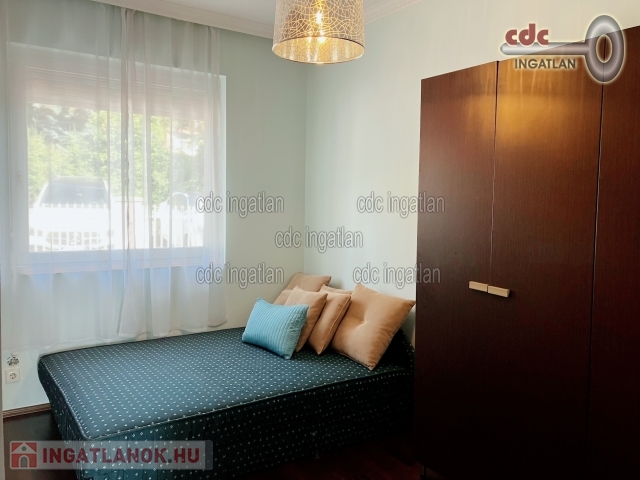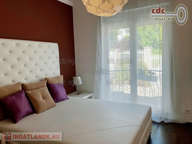 II. kerületben, Csatárka és Pálvölgy határában egy kisforgalmú, csendes utcában kiadó egy kis lakóközösségű társasház első emeleti lakása. Luxus minőségben felújított, világos, jó hangulatú, minőségi konyhával, ízlésesen berendezett. A 95 m2-es, nappali + 2 hálószobás, teraszos ingatlan rendkívül jó beosztású. A hálószobák külön nyílnak, az amerikai konyhás nappalihoz tartozik a 10 m2-es, kertre néző, panorámás terasz. A fürdőszobában kád és zuhanyzó is van, valamint egy wc és egy bidé. Közvetlen mellette van még egy wc kézmosóval. A lakás része még egy ablakos gardróbhelyiség is. Az ingatlan riasztóval ellátott, légkondícionált, fűtése cirkós, a nappali kandallós. A közös használatú kert folyamatosan gondozott, egy rendszeresen tisztított medencével is rendelkezik, melyet a lakók közösen használhatnak, csakúgy, mint a grillezőt. Parkolási lehetőség van a teremgarázsban, a kertben van egy kocsibeálló és még egy a ház előtt is. Az ingatlan minimum 1 évre kiadó, 2 havi kaució szükséges. A rezsi fogyasztás alapján fizetendő, a közös költség 100 Euro. Kisállatot nem lehet hozni, a dohányzás tilos az ingatlanban.