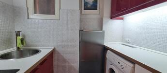 A lakás teljesen bútorozott és gépesített: rendelkezésre áll hűtő, főzőlap, mosógép, valamint kényelmes bútorok.