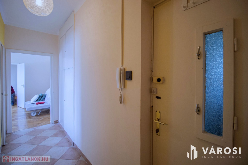 A lakás délnyugati fekvésű; részben bútorozott, nappaliban kinyitható kanapé, szobában franciaágy, íróasztal, polcok, illetve konyhában hűtőszekrény, gáztűzhely található. Közlekedőben beépített szekrény, fürdő külön wc.