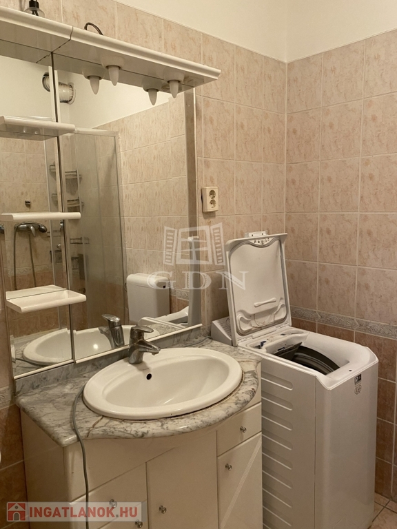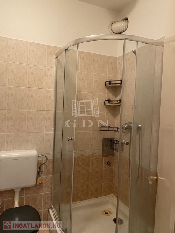 Helytakarékos megoldással a fürdőben zuhanykabin került beépítésre, növelve így a tér és komfort érzetet.