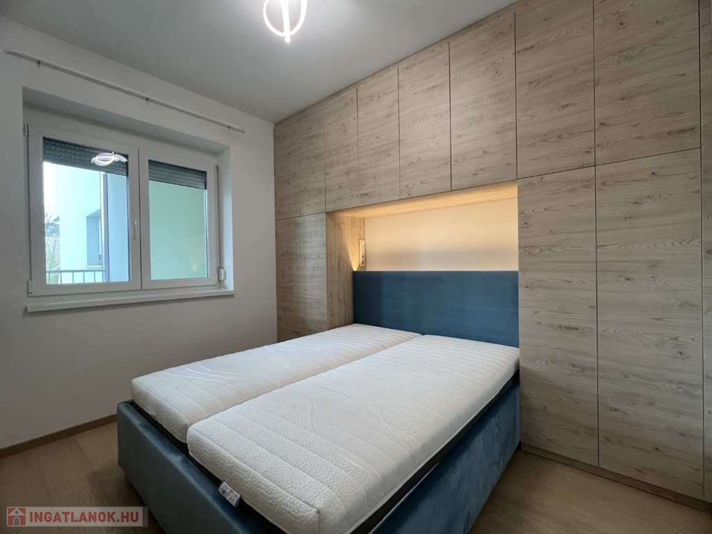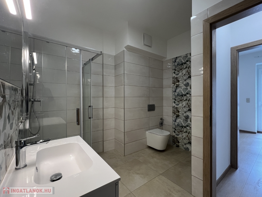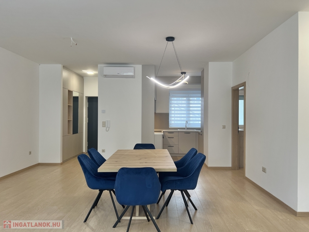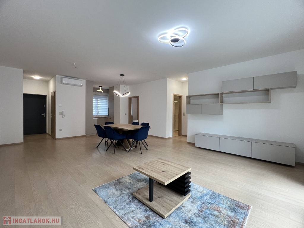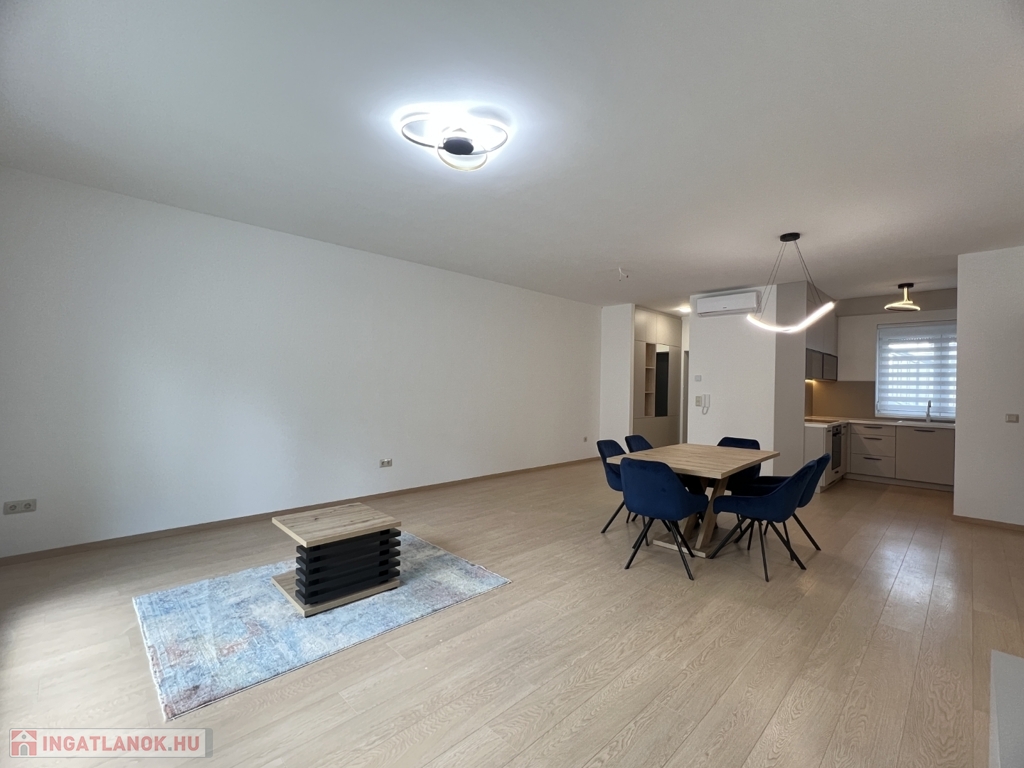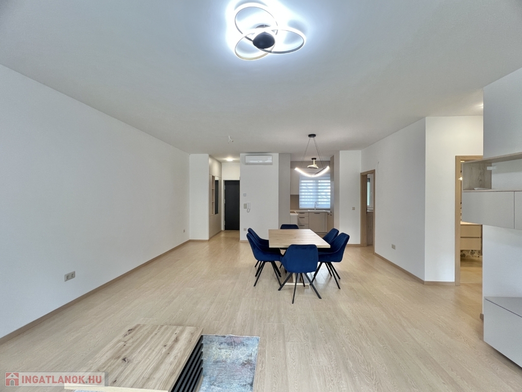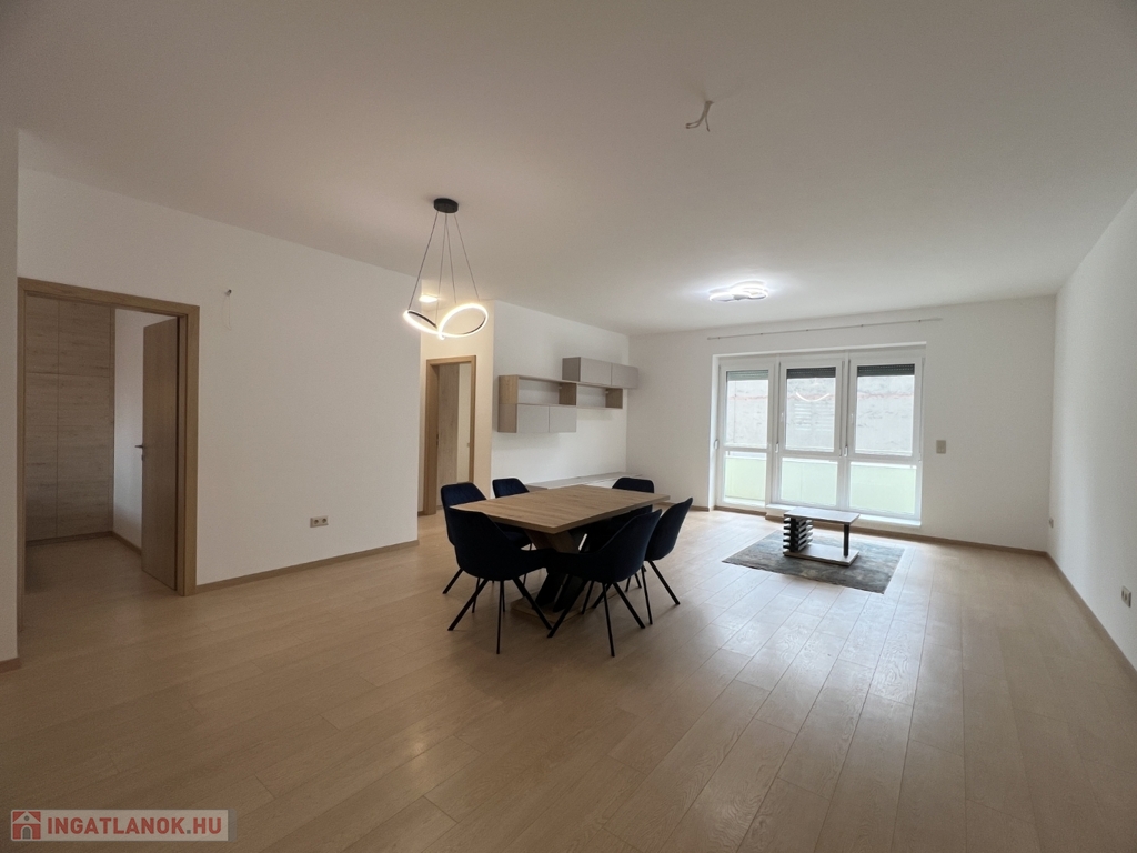 Kaposváron a Dési Huber utcában igényes kivitelben épült, modern architektúrájú 30 lakásos, új társasház földszintjén, 79 m2-es lakás, 17 m2-es terasszal hosszú távra kiadó. A lakásban nappali-étkező-konyha, 2 szoba, közlekedő, szélfogó, fürdőszoba-wc, wc helyiségek kerültek kialakításra. Az épület korszerű energetikájú, a lakás fűtés levegő-víz hőszivattyús Nibe fűtésrendszerrel - padlófűtéssel, a fürdőszobában elektromos törölközőszárító radiátorral - van megoldva, továbbá a lakás hűtése fan-coil Gree rendszerrel történik. A lakás fűtéséhez, vagy hűtéséhez szükséges villamos energiát az épület tetején elhelyezett napelemek biztosítják, a társasházban központi vízlágyító berendezés is beszerelésre került. A fürdőszobában magas minőségű Wellis szerelvények kerültek beszerelésre. A lakás elhelyezkedése kiváló, a közelben megtalálható a kórház, bevásárlási lehetőségek, közintézmények, illetve a Kossuth tér 15 perc kényelmes séta távolságra van. A lakást a tulajdonosa minimum 1 évre, legfeljebb 2 felnőtt személy részére kívánja bérbe adni - a bútorozottság igény esetén kérhető -, a dohányzás és az állat tartása nem engedélyezett. Bérleti díj: 300.000.- Ft/hó + rezsi + 2 havi kaució