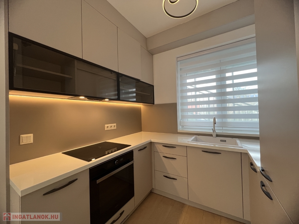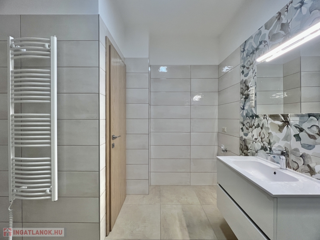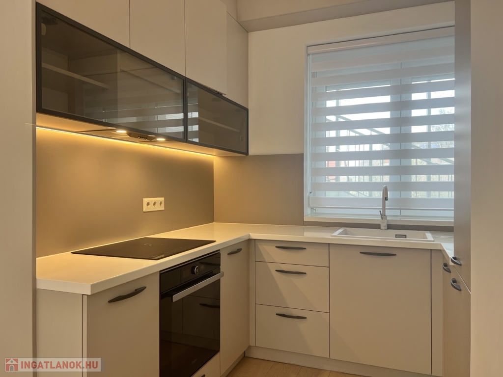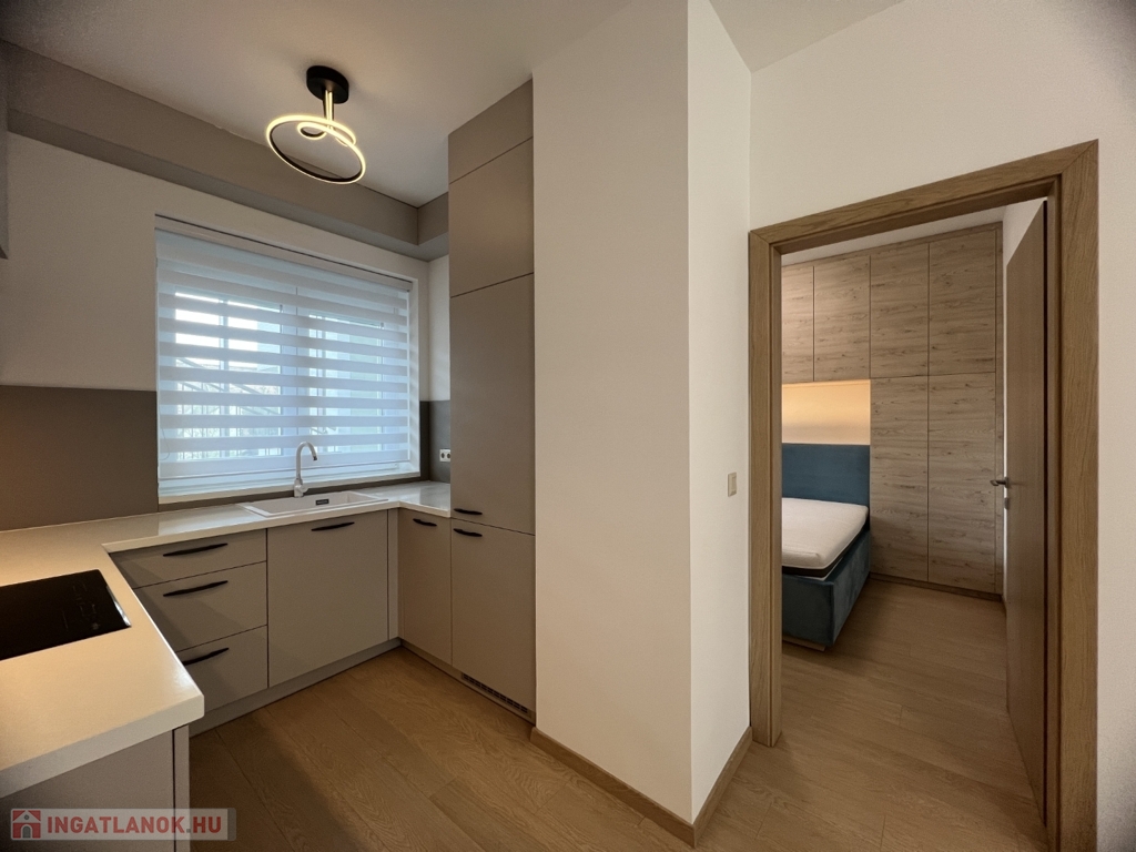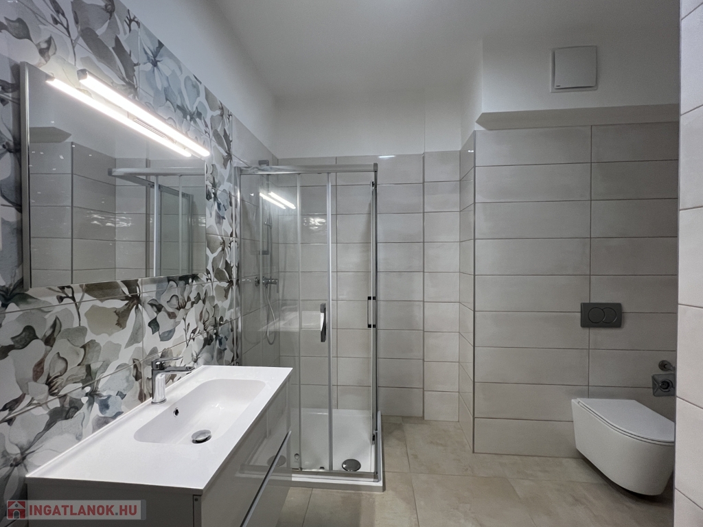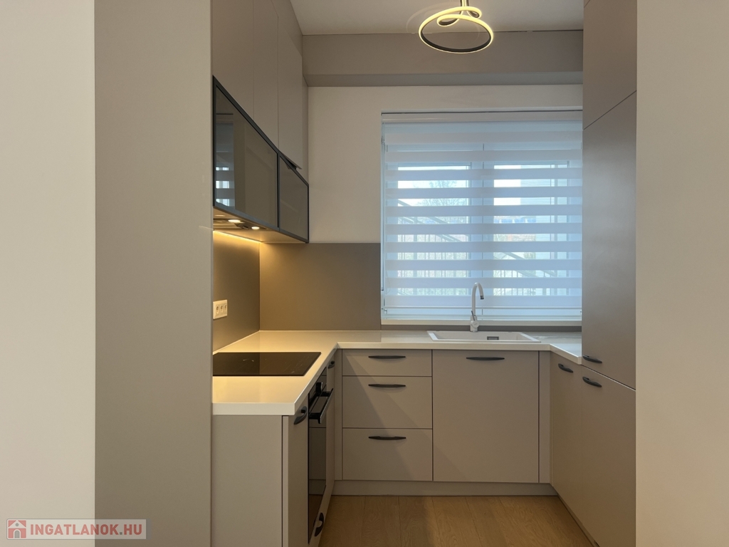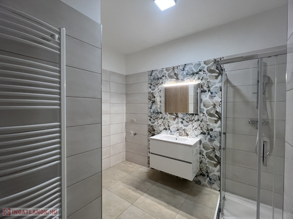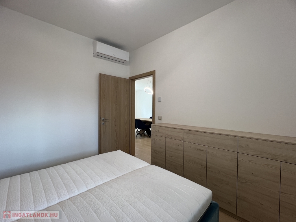 Kaposváron a Dési Huber utcában igényes kivitelben épült, modern architektúrájú 30 lakásos, új társasház földszintjén, 79 m2-es lakás, 17 m2-es terasszal hosszú távra kiadó. A lakásban nappali-étkező-konyha, 2 szoba, közlekedő, szélfogó, fürdőszoba-wc, wc helyiségek kerültek kialakításra. Az épület korszerű energetikájú, a lakás fűtés levegő-víz hőszivattyús Nibe fűtésrendszerrel - padlófűtéssel, a fürdőszobában elektromos törölközőszárító radiátorral - van megoldva, továbbá a lakás hűtése fan-coil Gree rendszerrel történik. A lakás fűtéséhez, vagy hűtéséhez szükséges villamos energiát az épület tetején elhelyezett napelemek biztosítják, a társasházban központi vízlágyító berendezés is beszerelésre került. A fürdőszobában magas minőségű Wellis szerelvények kerültek beszerelésre. A lakás elhelyezkedése kiváló, a közelben megtalálható a kórház, bevásárlási lehetőségek, közintézmények, illetve a Kossuth tér 15 perc kényelmes séta távolságra van. A lakást a tulajdonosa minimum 1 évre, legfeljebb 2 felnőtt személy részére kívánja bérbe adni - a bútorozottság igény esetén kérhető -, a dohányzás és az állat tartása nem engedélyezett. Bérleti díj: 300.000.- Ft/hó + rezsi + 2 havi kaució