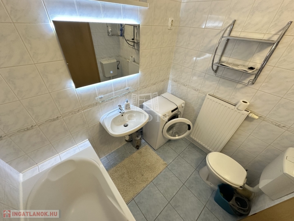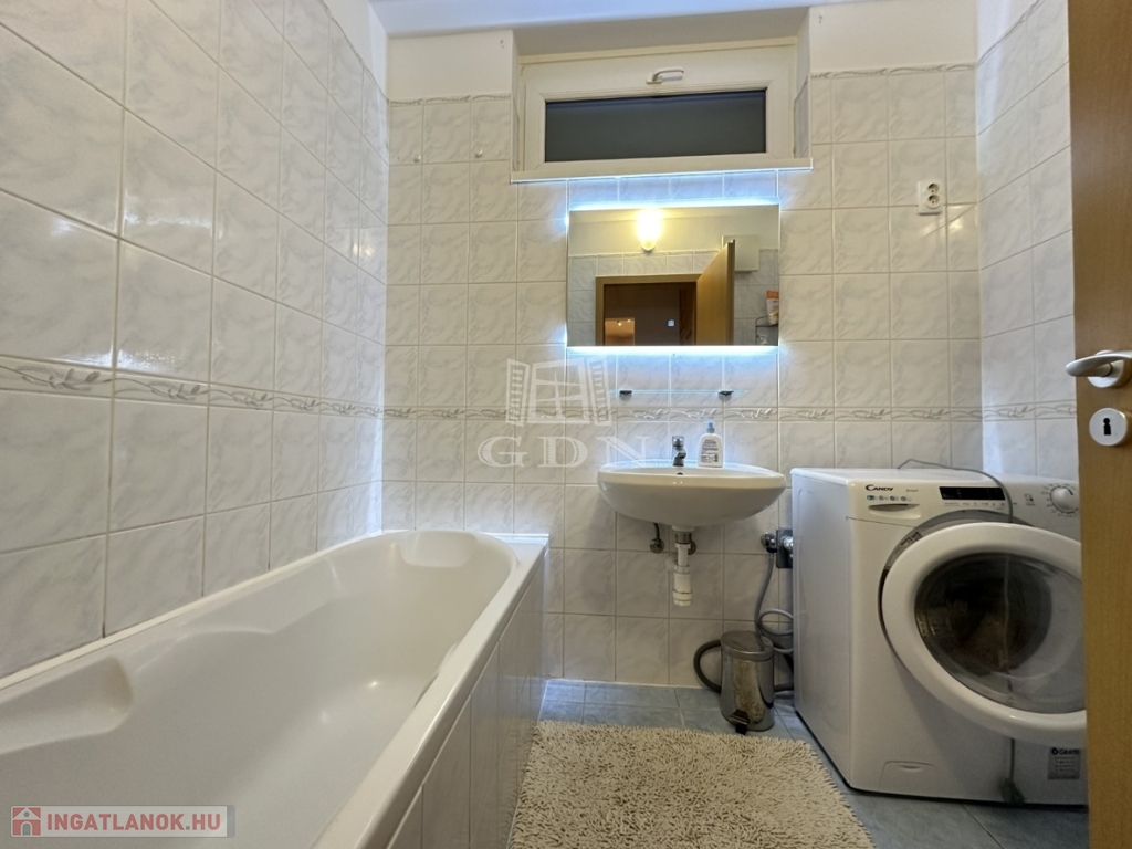 A wc és a kádas fürdő egy helyiségben kapott helyet. A fűtés központi, egyedi mérőórákkal. A lakás rezsi költsége rendkívül kedvező, a közös költség 14.650 Ft havonta. Parkolni az épület aljában található teremgarázsban lehet havi 20.000 Ft + 2415 Ft áron, ahonnan a lifttel tudunk a lakáshoz feljutni. Az épület előtt ingyenes a parkolás.
