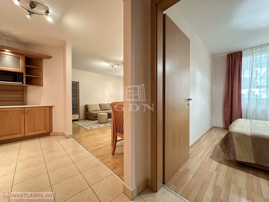 BL-004563. Zöld udvarházban, Alba Pláza közelében 2006-ben épült akadály mentes társasházban kiadó hosszútávra, egy földszinti, nappali + 1 szoba elosztású 50 nm-es, belső teraszos, bútorozott és gépesített, jó állapotú téglalakás.