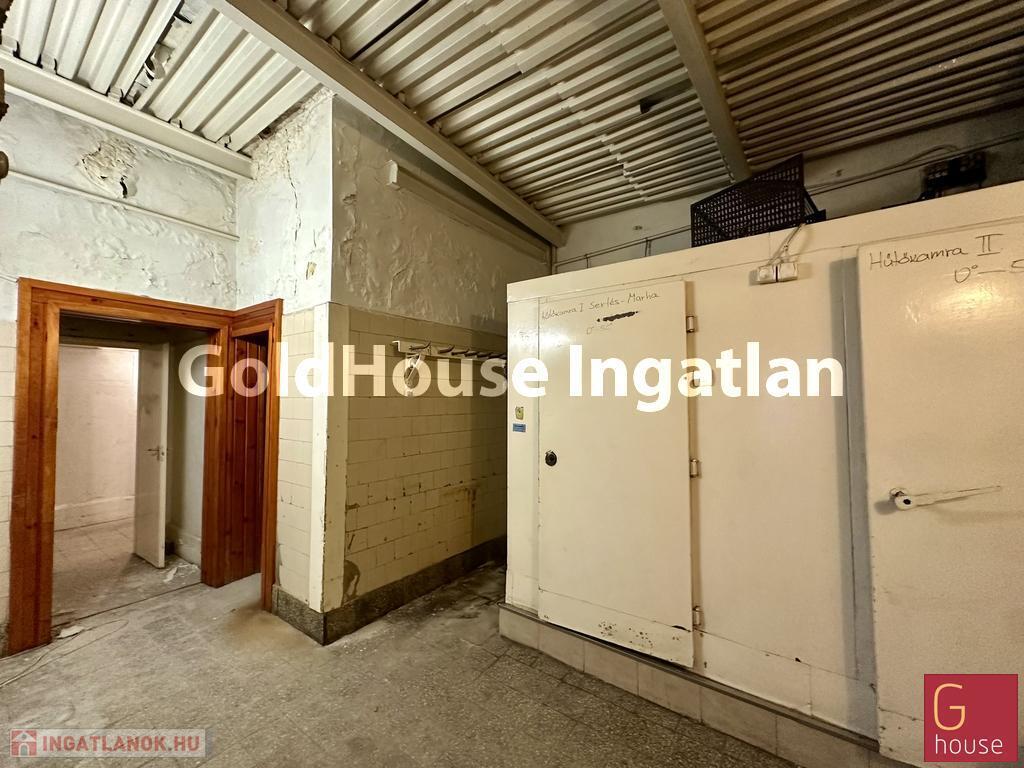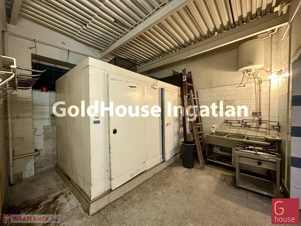 A hátsó részben szociális helyiségek, mosdó, raktár, udvari gazdasági kijárat, valamint két nagy hűtőkamra található, amelyek igény esetén elbonthatók, így még nagyobb hasznos terület nyerhető.