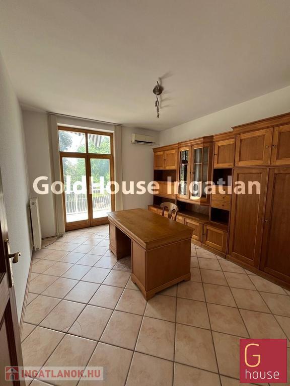 Ez összesen 9 iroda helyiség (szoba) + a mellékhelyiségek. A házon belül a szintek külön-külön is szeparálhatók a lépcsőházból. A ház kívül, belül újszerű, légkondicionált, illetve riasztóval felszerelt. A házhoz kert és terasz tartozik. Igény esetén bútorokkal vagy üresen is kiadó.