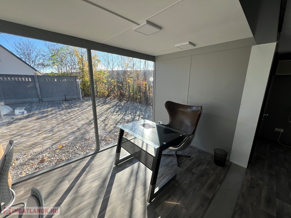 Győr-Gyárváros rendkívül kedvelt, klasszikus részén, Ipari Parktól, M1-es autópályától, Belvárostól alig pár perces autótávolságra, aszfaltos útról megközelíthető, ipari kamerával és térvilágítással ellátott, 55.000 m2-es (5,5 ha) telekből, leválasztott, körbekerített, - 4 db személygépkocsi pakolását biztosító – térkövezett, 250 m2-nyi területen lévő, 22,08 m2-es üzlettérből/irodából, továbbá 4,83 m2-es irodából álló, saját konyha – étkezővel és saját szociális egységgel felszerelt, összesen 40 m2-es jelentős részben bútorozott, KLIMATIZÁLT 3 db 20 lábas konténerből álló iroda/bemutatóterem/üzlethelyiség sokrétű felhasználhatóság lehetőségével kiadó!