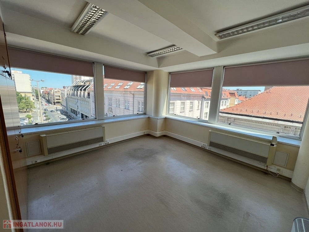 Győr-Belvárosának szívében, Baross úttól, Széchenyi tértől pár másodperces sétatávolságra, rendezett, tiszta irodaház 4. és 5. emeletén, nagy üvegfelülettel rendelkező, 25 m2-es bútorozatlan iroda kiadó.