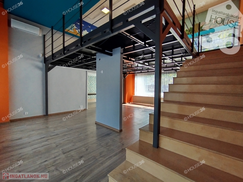 Kecskemét egyik legforgalmasabb, központi utcájában 133 m2 üzlettérrel (2 különálló tér, mindkettő galériával) és 10 m2 raktárral, valamint konyhával és mosdóval rendelkező utcafronti üzlethelyiség kiadó.