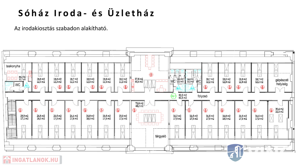Szeged - belvárosi részén, közvetlen a Tisza parton kiadó irodaház, összesen 550 m2 területű iroda helyiséggel, 24 db külön bejáratú iroda helyiséggel, 2 db tárgyaló helyiséggel, teakonyhával, valamint mosdó helyiségekkel.